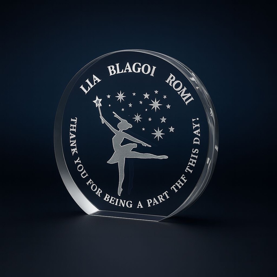 Плосък кристал с гравирано изображение по снимка. Може да добавим и текст за по-личен елемент.